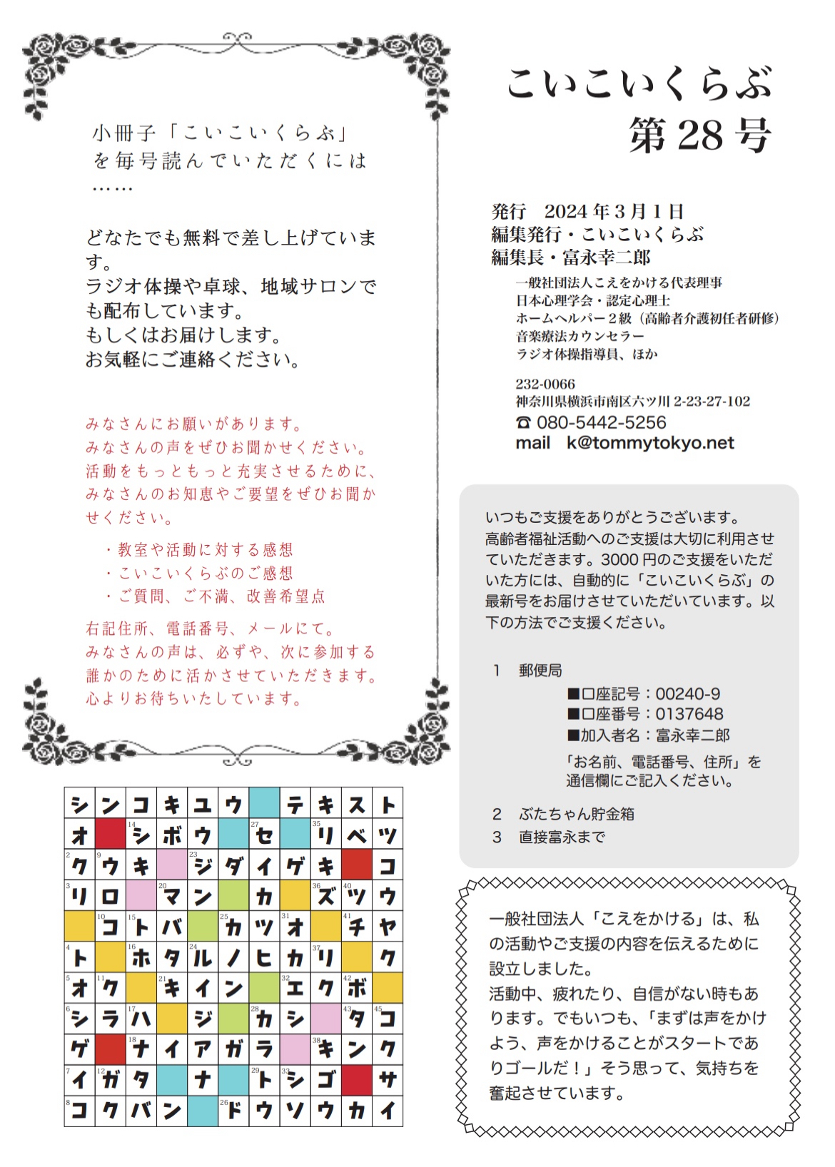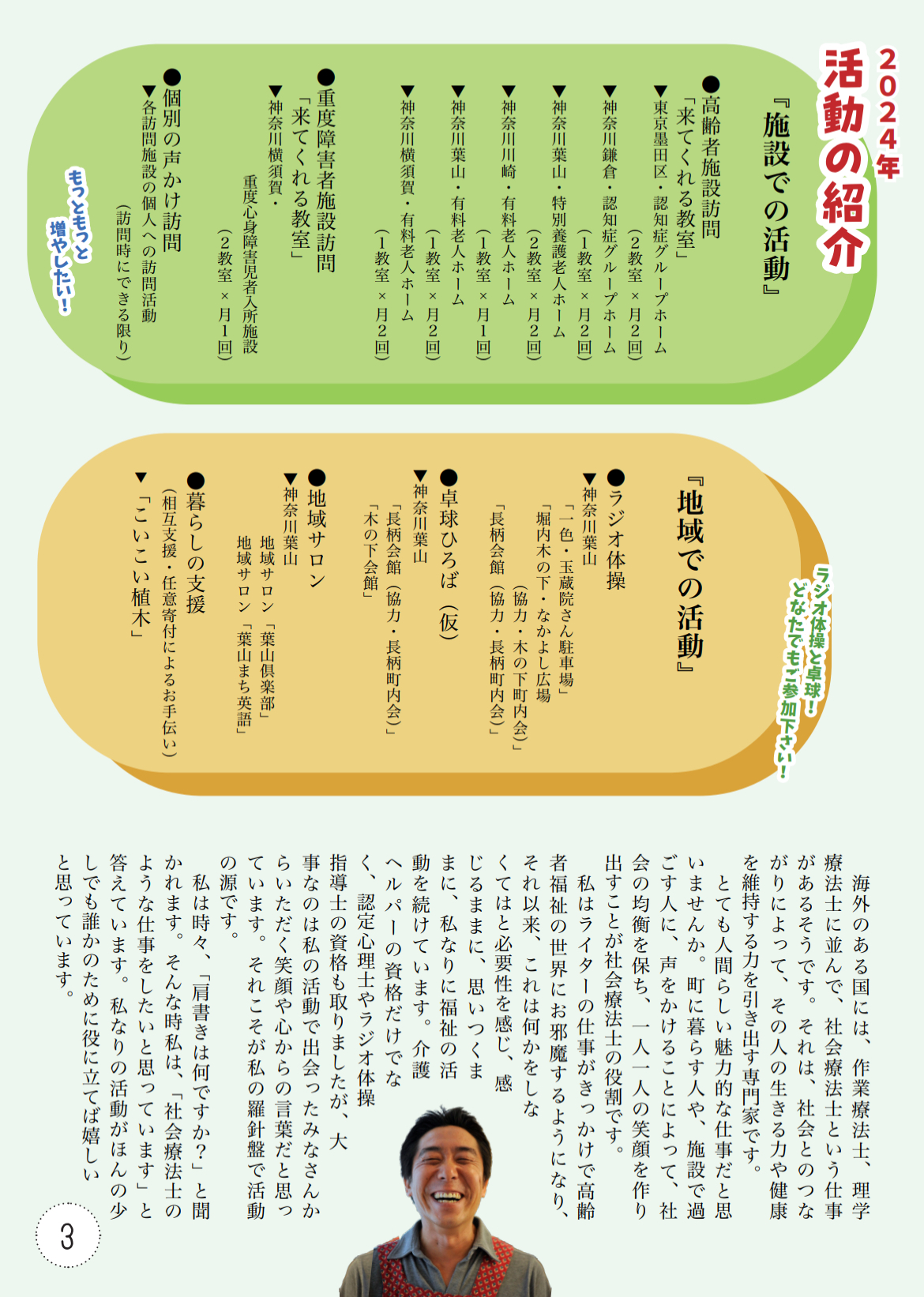 レク不足解消、人手不足に悩む施設のための「こいこい日本」と、活動を広くお知らせする「こいこい広報」、どちらもがんばります。