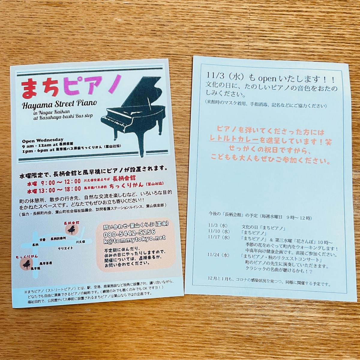 11/3(水)文化の日! まちピアノやります!! たくさんの人に、ピアノを弾くことと、聴くことを楽しんでいただければ幸いです!!