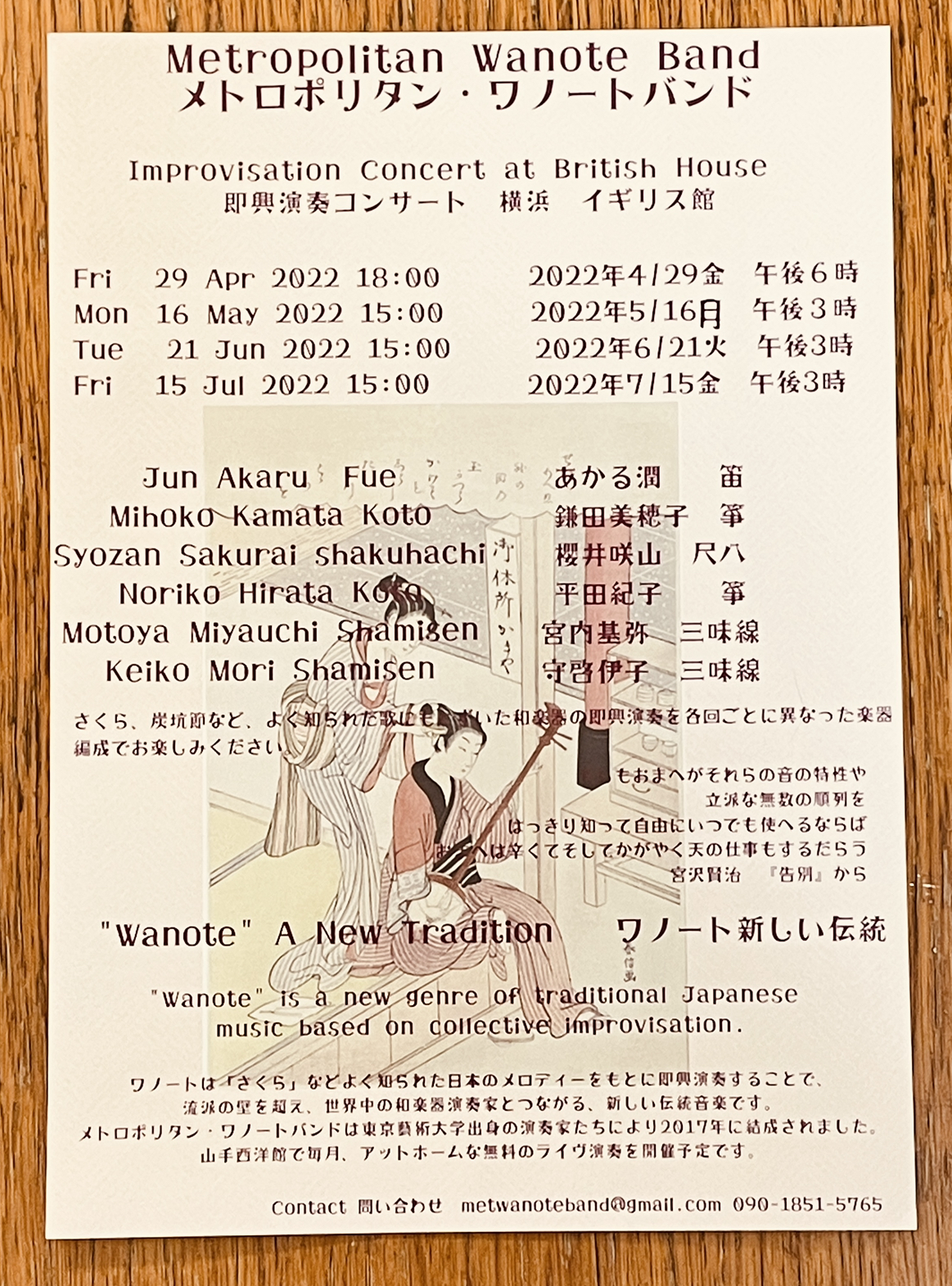 東京藝大邦楽科などご出身の「プロの和楽器演奏家」による無料ライブ演奏が毎月おこなわれています!横浜・「港が見える公園」隣のイギリス館にて!