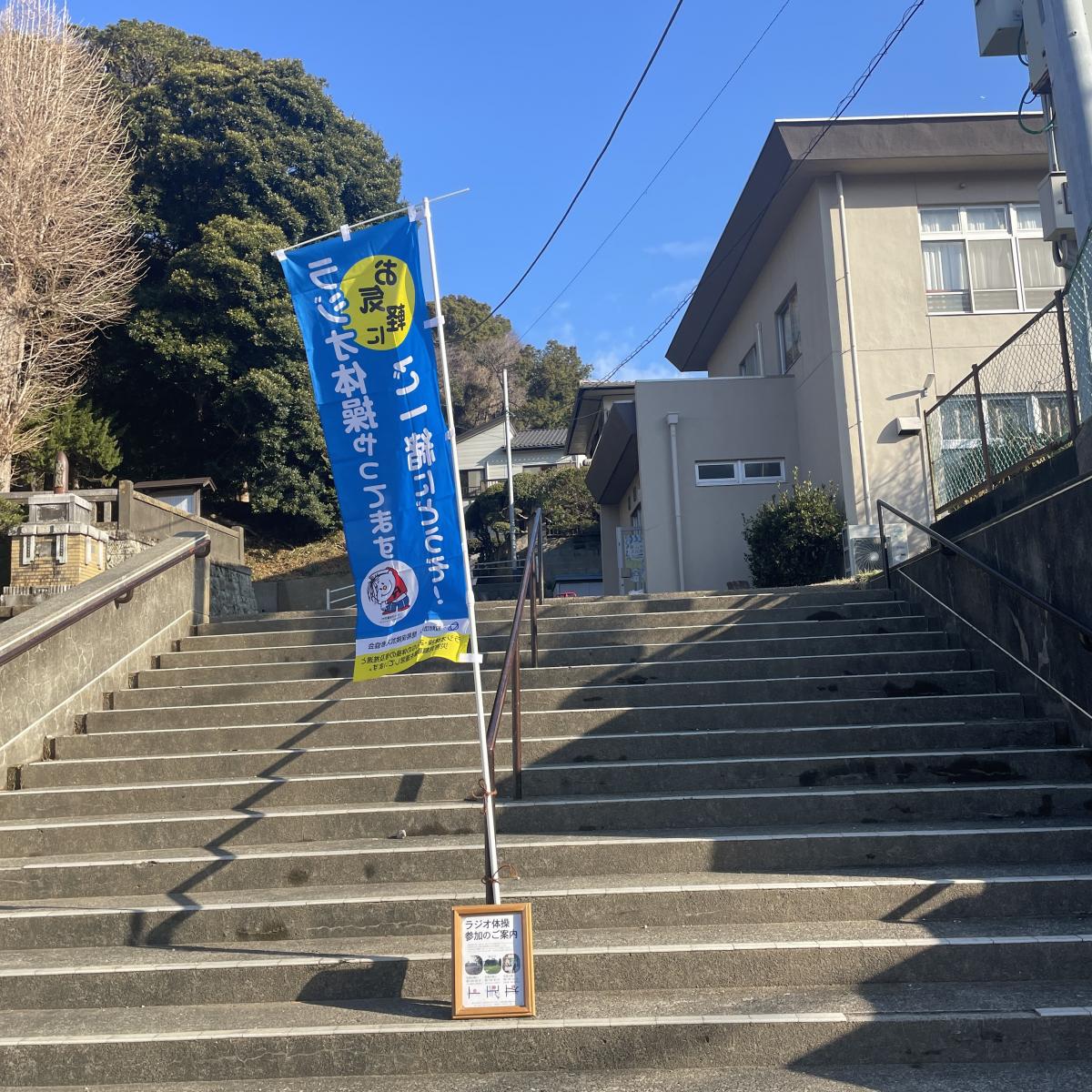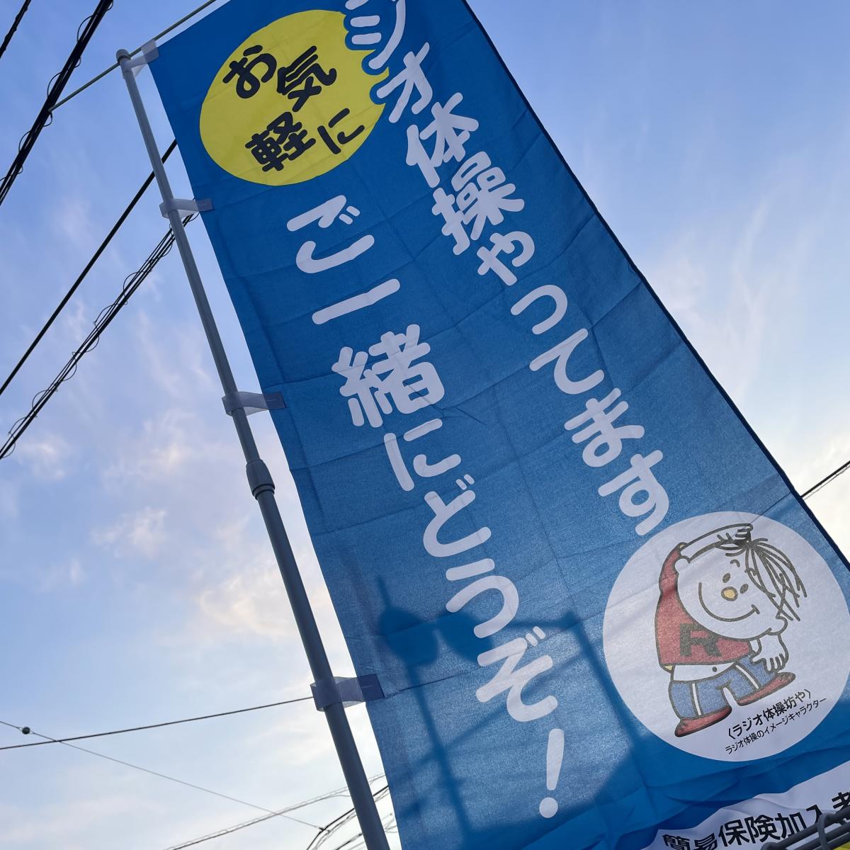 1/31水曜日もラジオ体操! 新しいのぼりが到着!午後には卓球台が木の下会館に届きます!