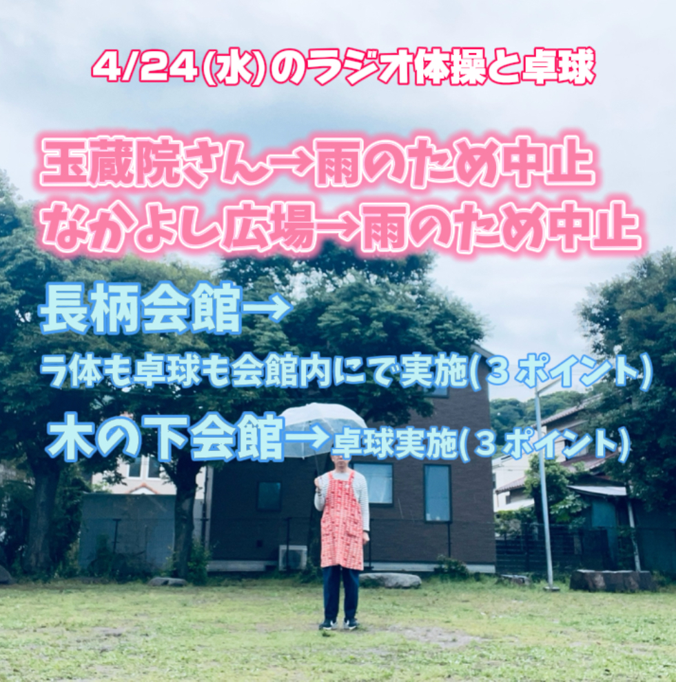 3/27水です!ラジオ体操、卓球、英語、すべて開催です!