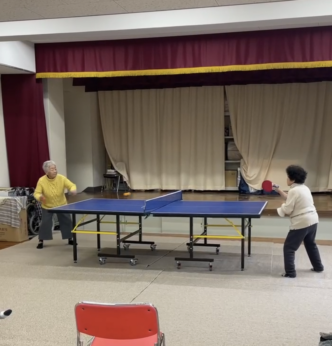 とだれかがいうもので、じゃあ、歌と卓球やりましょうかね。