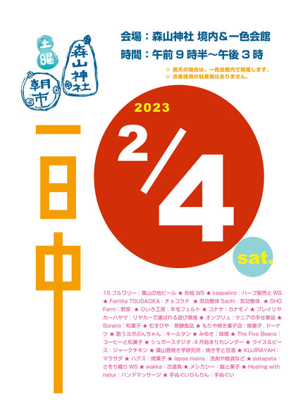 そして、今週末の森山神社土曜朝市は「3時まで」の拡大版だそうです!