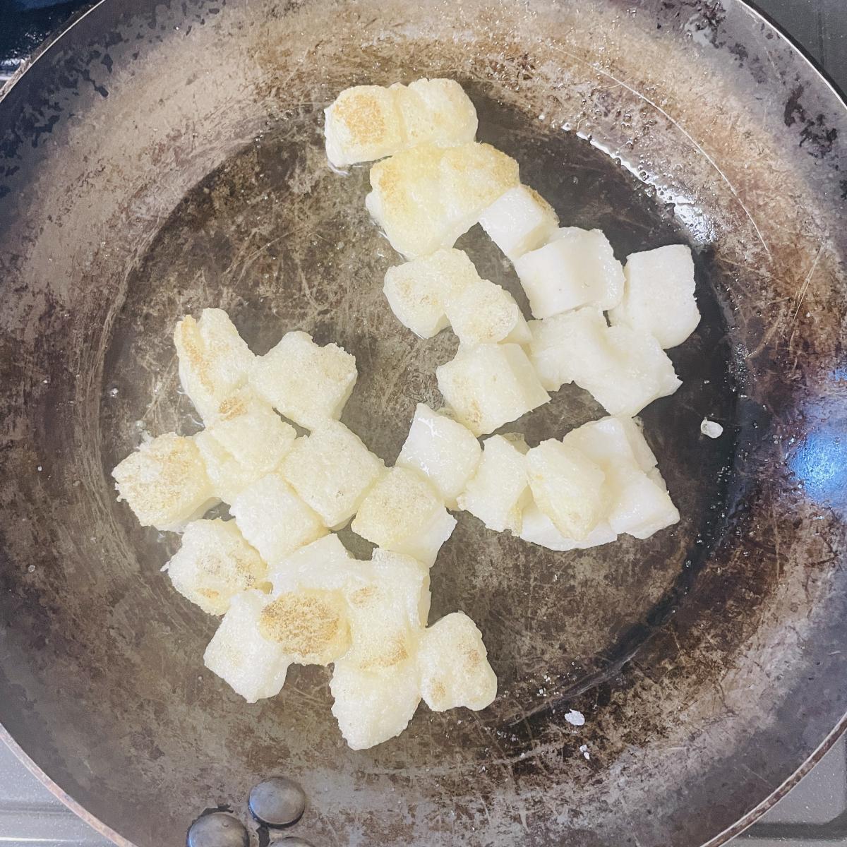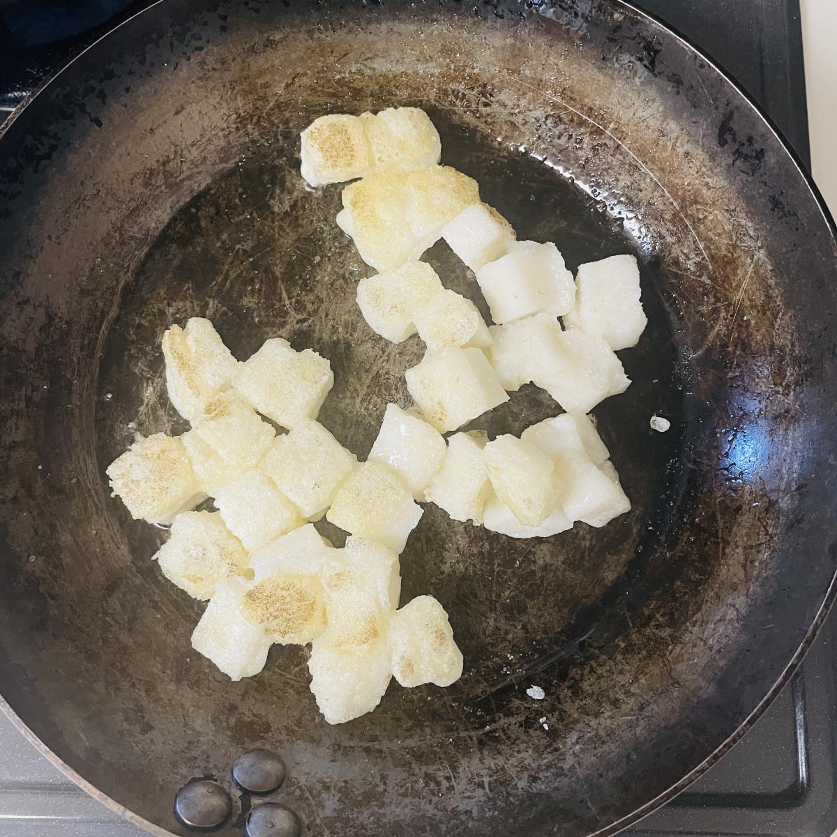 お餅をフライパンで焼いてみました。