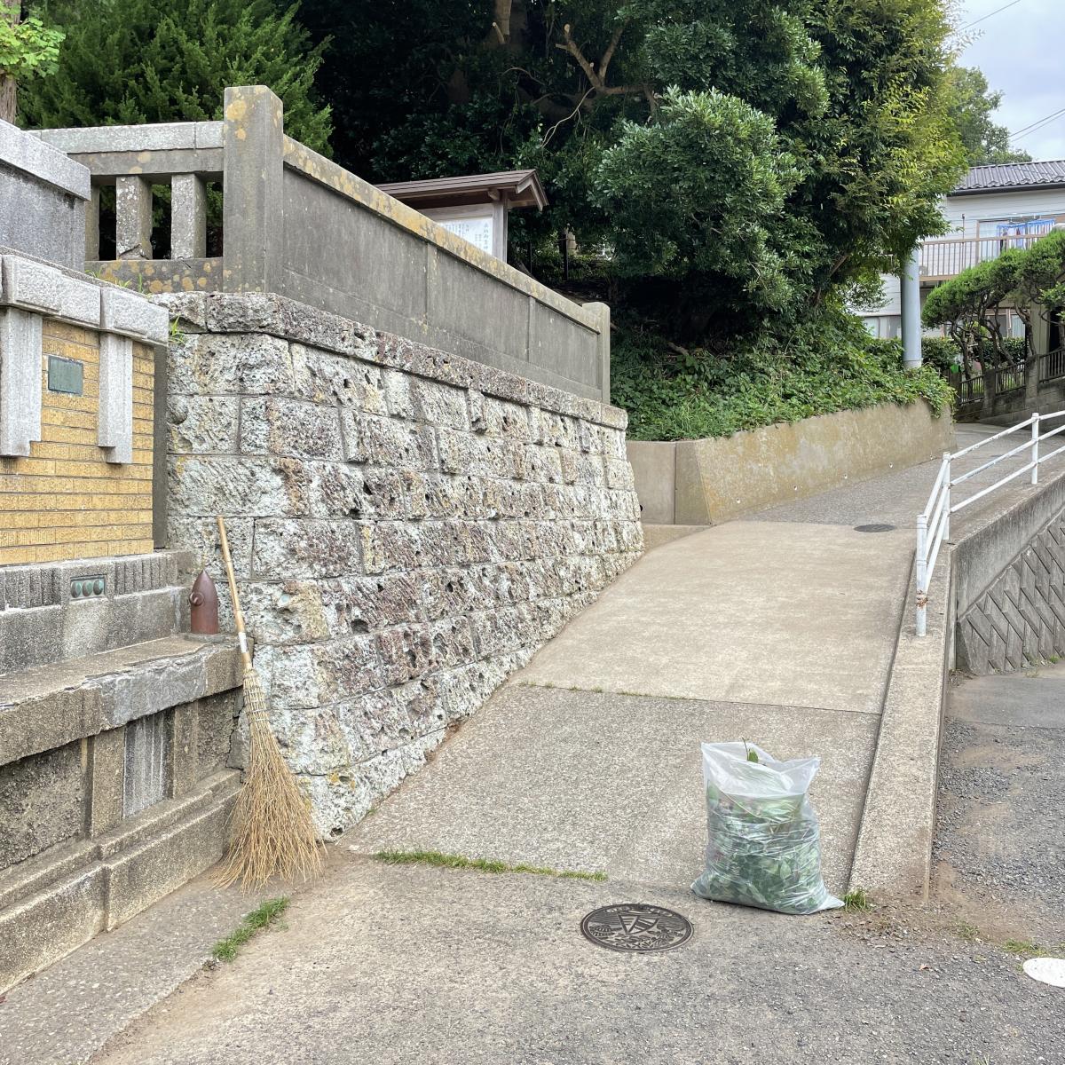 ちょっと早く着いたので、神社脇の掃き掃除をしてたら、雑草取ったり、アイビーを揃えたり、そんな作業まで始まって、あっという間にゴミ袋が一袋。