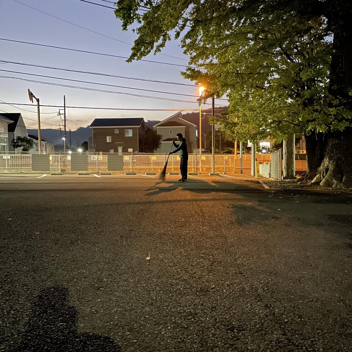 そして、ラジオ体操の前の駐車場の掃きそうじ。