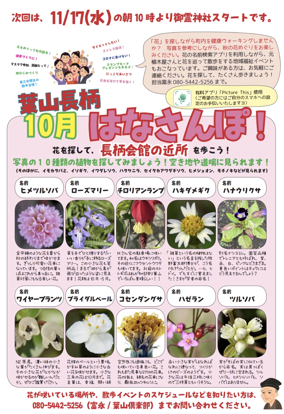 ◇次回『長柄11月はなさんぽ』 ◇11月17日(水) ◇葉山長柄 ◇御霊神社10時より
