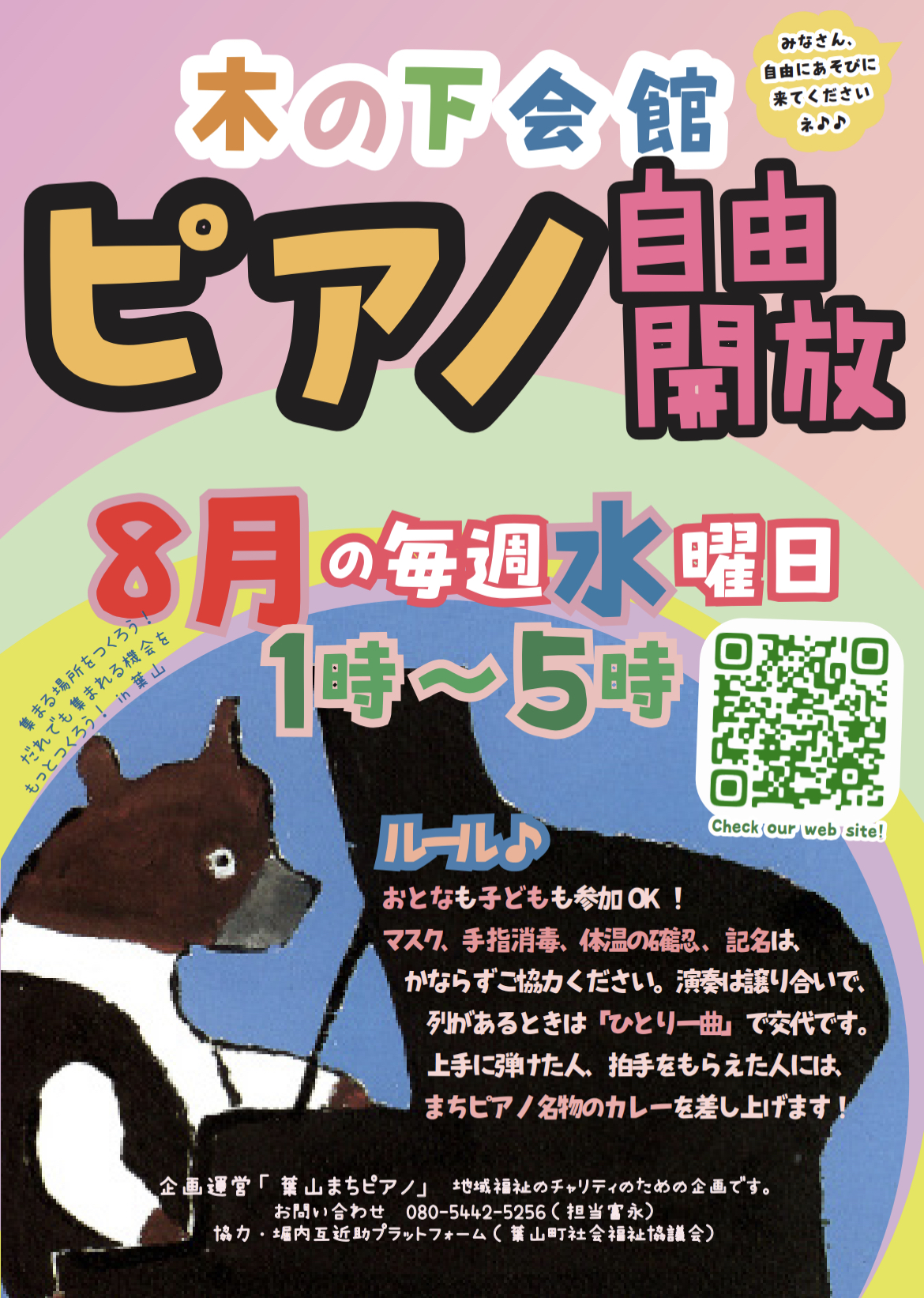 夏休み限定! 毎週水曜の午後、木の下会館まちピアノOpenします!