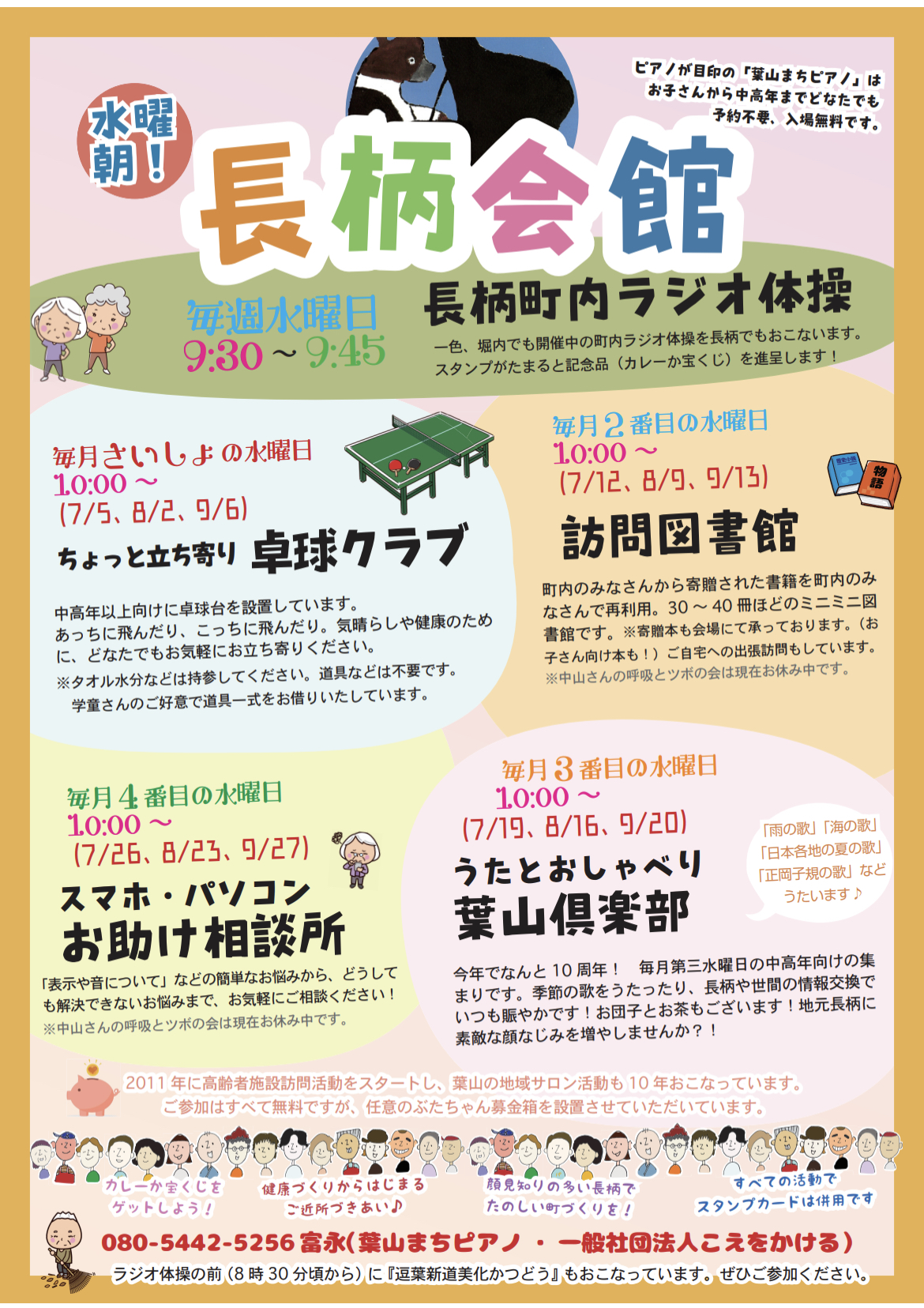 今朝も晴れました!6/21のラジオ体操、まちピアノ、美化活動、長柄会館葉山倶楽部は開催します!