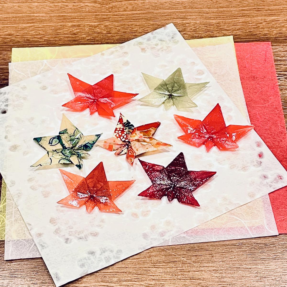 紅葉のおりがみ仕上げ。